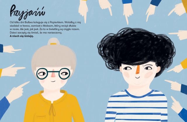 Wszyscy się czegoś boimy, niezależnie od wieku. I wszyscy staramy się jakoś ze swoim strachem uporać. O tym właśnie jest ta książka, pierwsza z cyklu Bulbes i Hania Papierek. Opowiada o Olafie, zwanym Bulbesem, i jego nieśmiałej koleżance Hani, ale także o ich rodzicach.